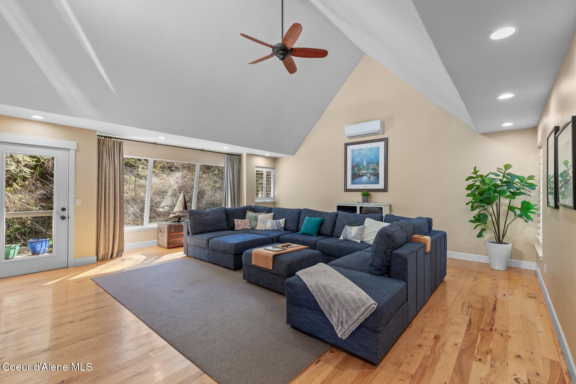 Designed by the architect behind the CDA Resort, this stunning 3-story home offers a truly unique layout in an unbeatable location near Sanders Beach, Sherman Ave, Tubbs Hill, McEuen Park, and the Centennial Trail. The lower level features a private office (optional 3rd BR), laundry, spacious flex room (ideal for a gym or future guest suite), and a half bath. Upstairs, you'll find two en-suite bedrooms, including a serene primary retreat, plus a generous den/media space. The top level is the heart of the home, with soaring ceilings, a beautifully appointed kitchen with high-end appliances and wine bar, and a light-filled great room that opens to a deck overlooking the terraced, landscaped backyard. Low-maintenance turf in both front and back makes upkeep effortless, while recent updates--including fresh exterior paint, new gutters, and mini-splits--ensure comfort and peace of mind.